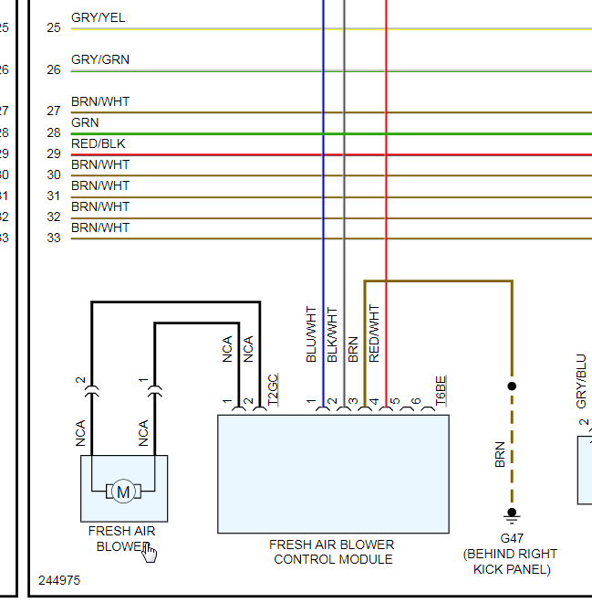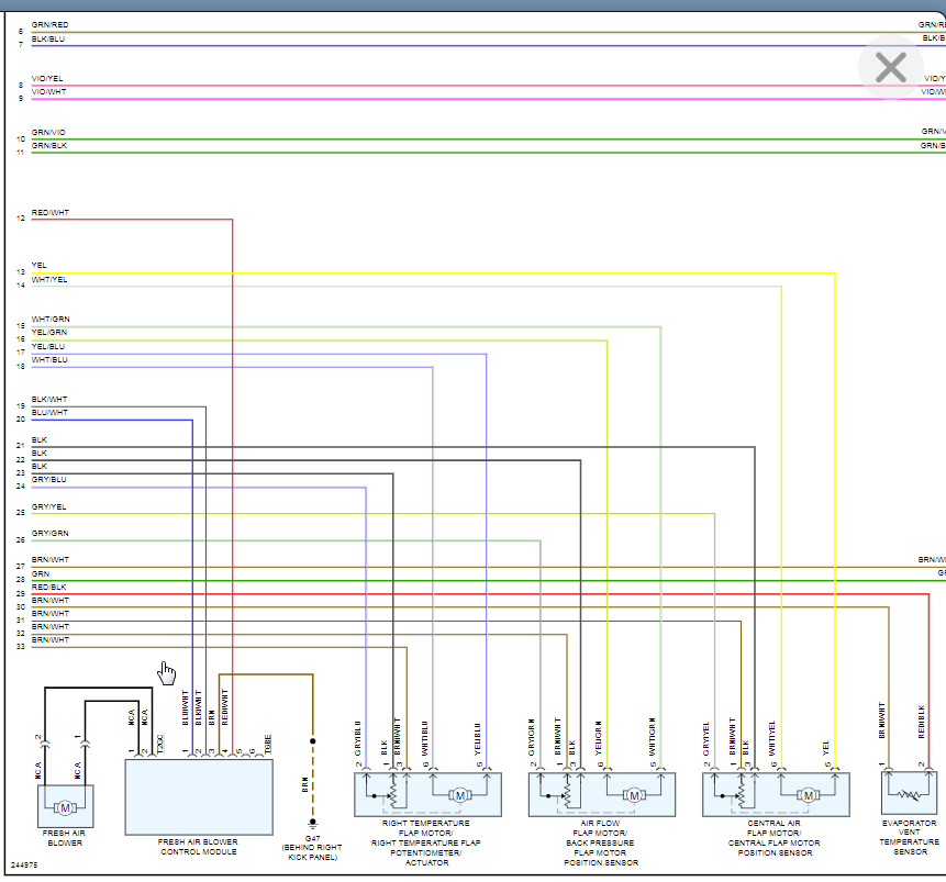 We need to start with checking fuse 22 in fuse panel C. If this fuse is okay then we need to check voltage at the resistor when the blower is turned on the resistor for control voltage and then B+ as well.