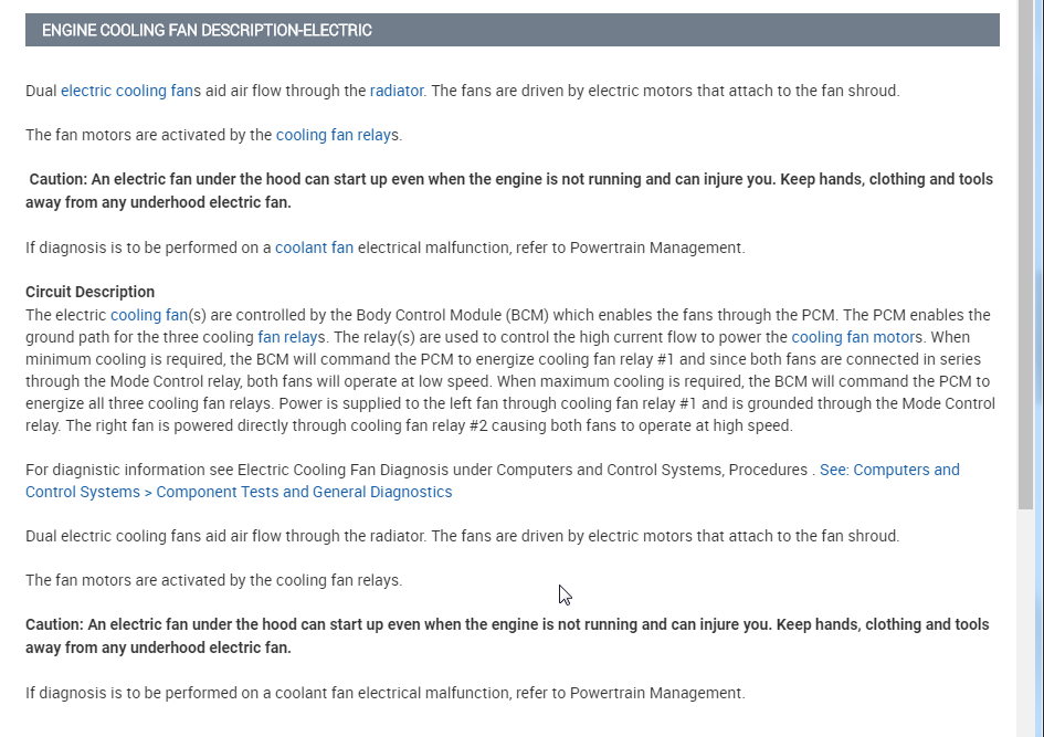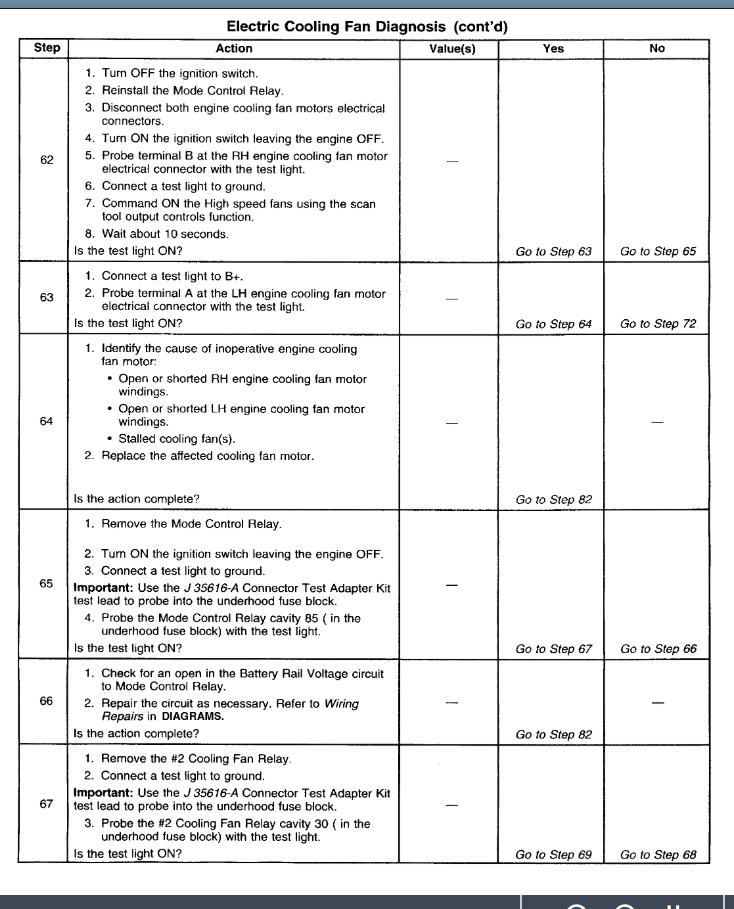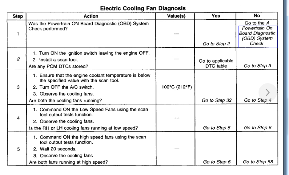 Okay. We need to start with what the BCM is seeing as the coolant temp. The way this works is the BCM monitors the temp and when it gets high it tells the PCM to ground the relays and turn the fans on. This means we need to see if the BCM is seeing the proper temp. If it is then we need to look at the PCM to see if it is getting the command to turn them on. If it is getting the command then we can assume that the PCM is the issue.