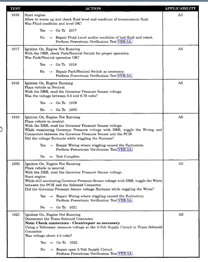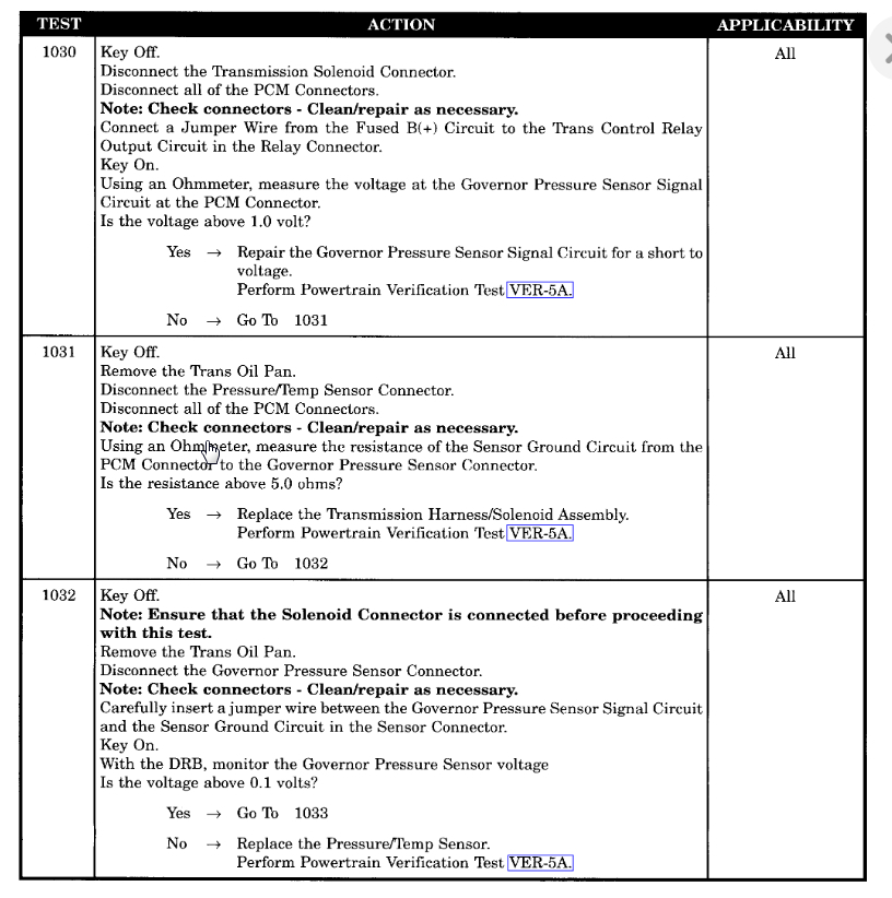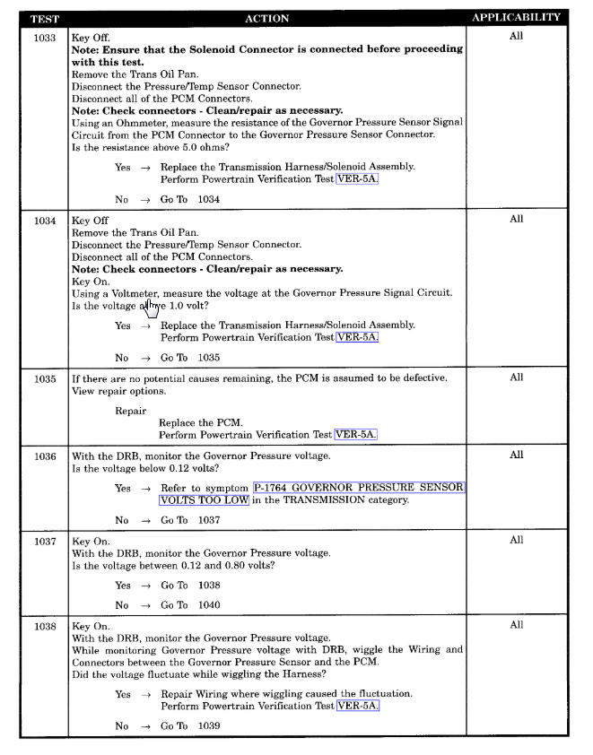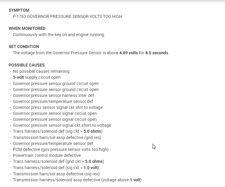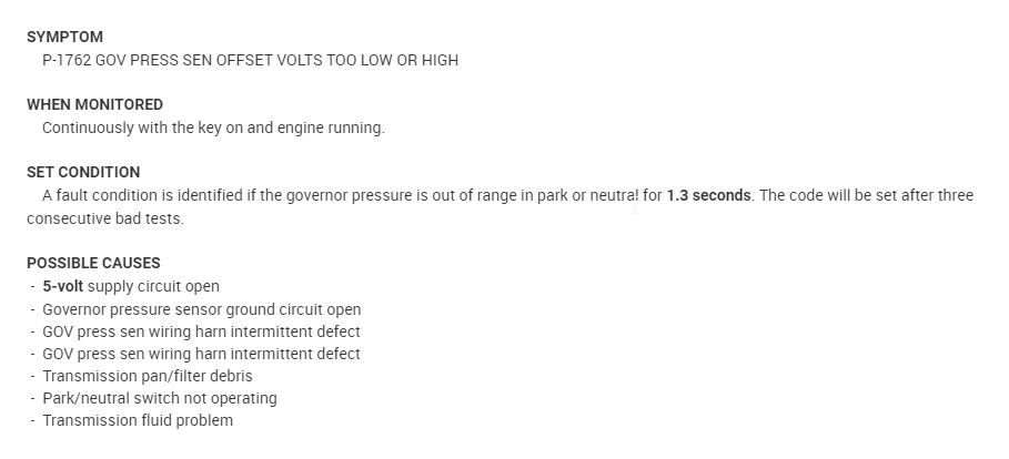 I attached the testing for these codes that we need to run through. I would suggest starting with the P1762 code and see what you turn up. Clearly we need to check the fluid and make sure that is okay but after that, just run through this. There could be internal damage but I would start with these tests because clearly this sounds like a governor issue which is where I was going with my thinking earlier so this just confirms it.