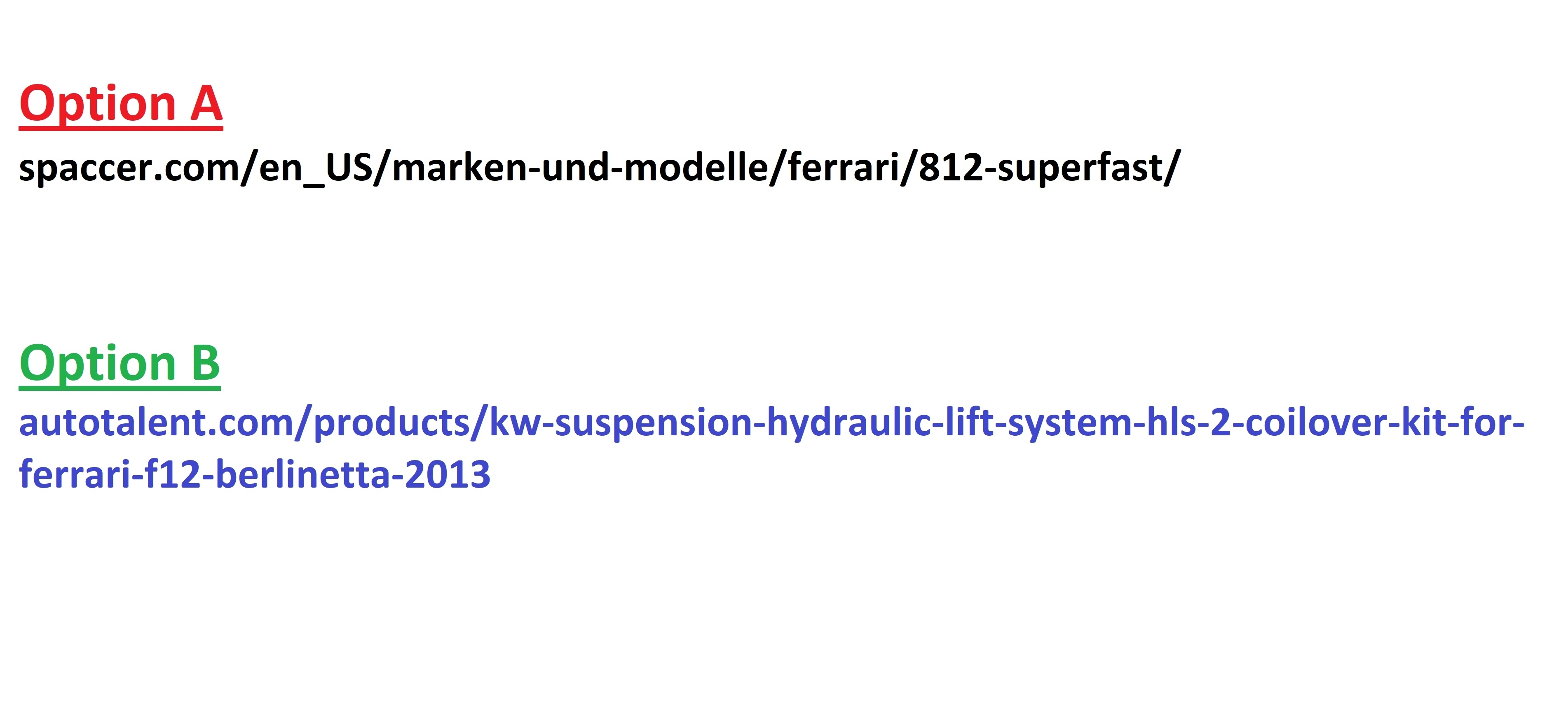 2nd option = https://autotalent.com/products/kw-suspension-hydraulic-lift-system-hls-2-coilover-kit-for-ferrari-f12-berlinetta-2013