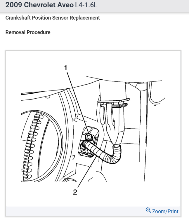 finding location of crankshaft position sensor on 2009 chevy aveo where is it located?