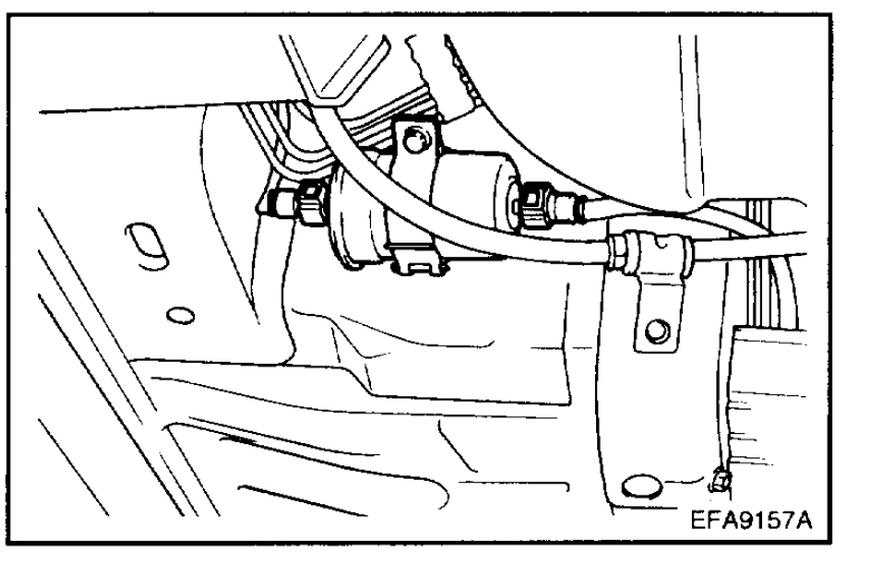 On this vehicle, the fuel filter is an inline filter. The fuel filter is located underneath the chassis on the left-hand side of the fuel tank.