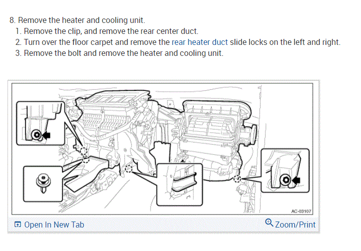 I attached the directions for the removal of the instrument panel assembly. Note: You will need to drain the engine coolant and recover the freon from the A/C system for this procedure. After that, I included the directions for the heater core case removal.