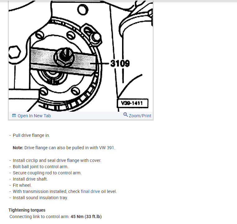 Connecting link to control arm: 45 Nm (33 ft.lb)
