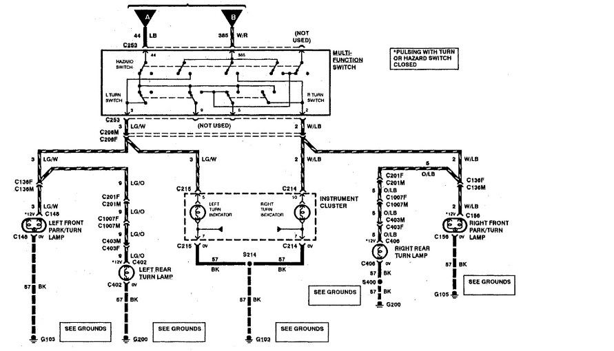 Okay so my boyfriend has the truck listed above XLT super cab 4 wheel drive truck. And we have been having a turn signal problem, so what happened was every time he would turn on either the right or the left turn signal it would automatically blow a fuse every time and we replace that fuse countless times. So then the turn signals quit working all together but the hazards worked for a few days but quit working. so we have replaced the multi switch that wasn't the problem, then we replaced the flasher relay box under the dash, and now we still have no turn signals, but the hazard lights started work again. But the battery light on the dash flickers on everytime we try either the right or left turn signal.