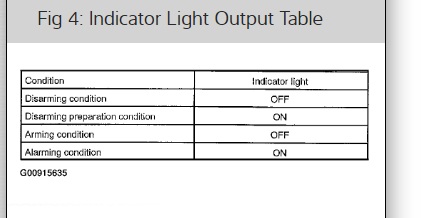 Even in the disarming condition, the indicator light flashes (due to a signal output from immobilizer system). The indicator always flashes by receiving a signal from the immobilizer system at any time in the arming condition.