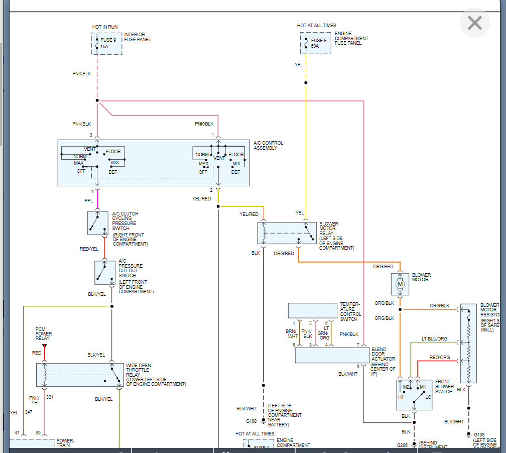 Next we need to find out if we have voltage from the PCM power relay going to the wide open throttle relay.