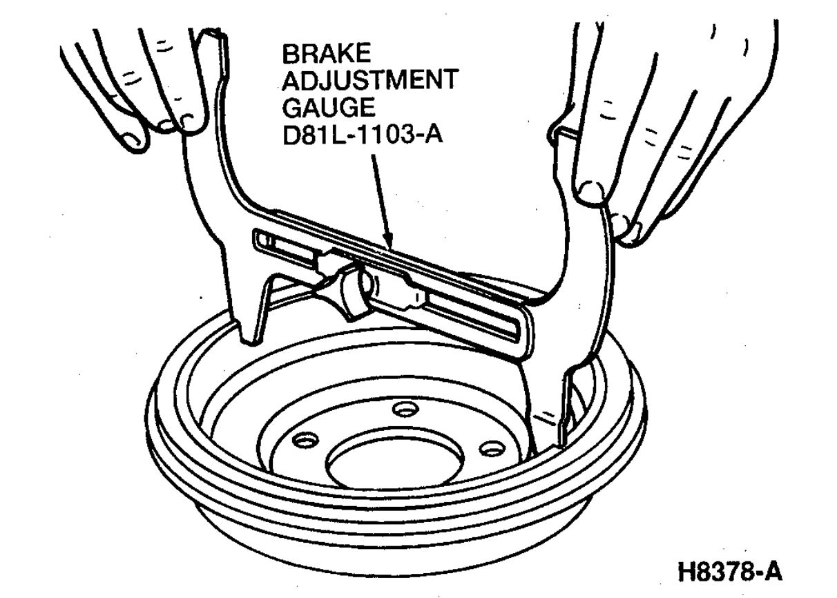 3.Adjust brake shoes to fit gauge. Rotate gauge around shoe to ensure proper fit. Install brake drum. Install wheels. Check brake operation by making several stops at varying forward speeds.