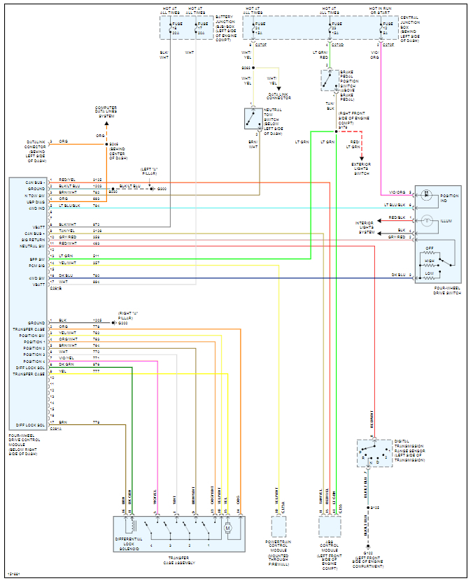 4x4 will not engage dashboard lights work on switch but no response. I put new auto high and low switch in the dash, I also installed a new transfer case control module, but still no response. when driving it feels like it's in four-wheel drive all the time don't know if it's in low or high the little dashboard light indicating high or low when switched no response does not show up on dashboard.