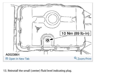 Allow the fluid to drain. When the fluid comes out as a thin stream or drip, the fluid is at the correct level. Reinstall the small (center) fluid level indicating plug using a 3/16" Allen key.