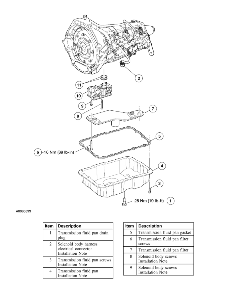 Remove transmission fluid pan screws and fluid pan. Remove transmission fluid pan gasket, filter screws and filter. See Fig. 10 . Remove transmission fluid pan magnet.