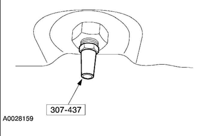 Hold the larger drain plug with a wrench and remove the small (center) fluid level indicating plug using a 3/16" Allen key. Install the Fluid Level & Fill Plug Adapter (307-437) into the pan. See Fig. 4 .