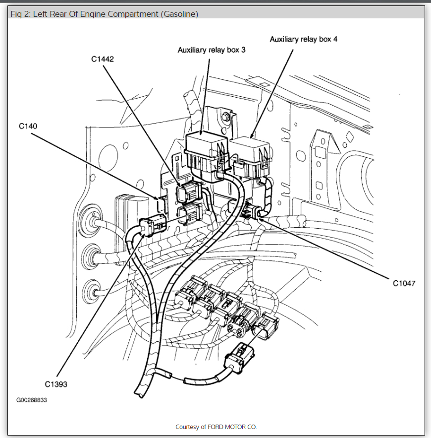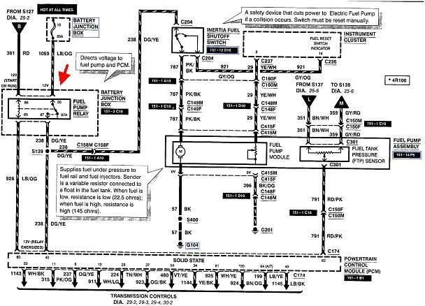 The ignition switch does not need to be on for this. The jumper will energize the circuit, and the fuel pump should be running. If it is, this entire part of the circuit is okay. If it is not running, now is the time to work your way through the circuit with the test light.