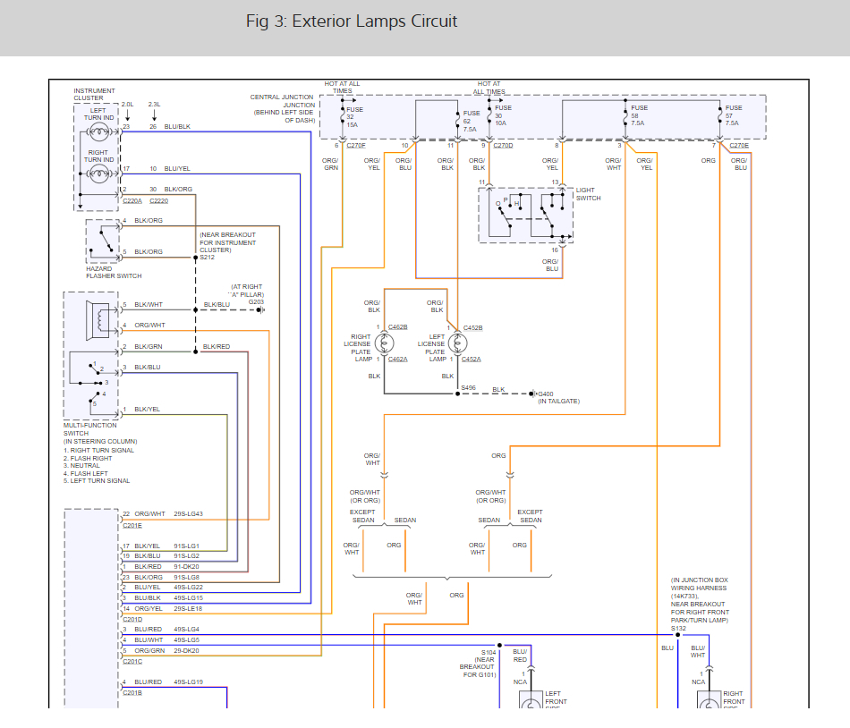 Steering column switches consist of a multifunction switch, ignition switch and wiper/washer switch. The multifunction switch controls hazards, turn signals headlight high beams, wiper/washers and flash-to-pass feature
