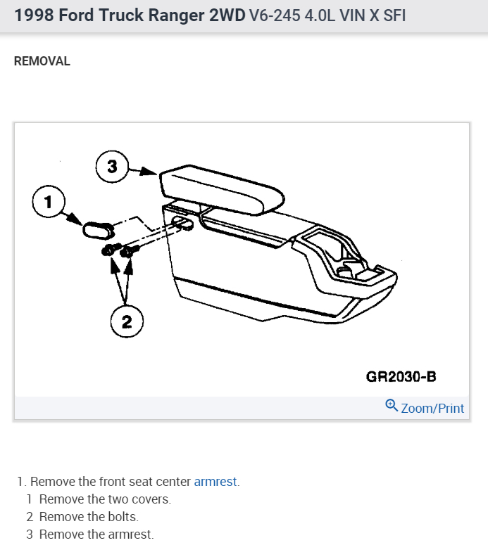 The center console on my Ranger XLT has become loose over time, probably from pulling on it to climb into the truck. I can't find any bolts that I might tighten down and I'd like to know how to remove or tighten the console.