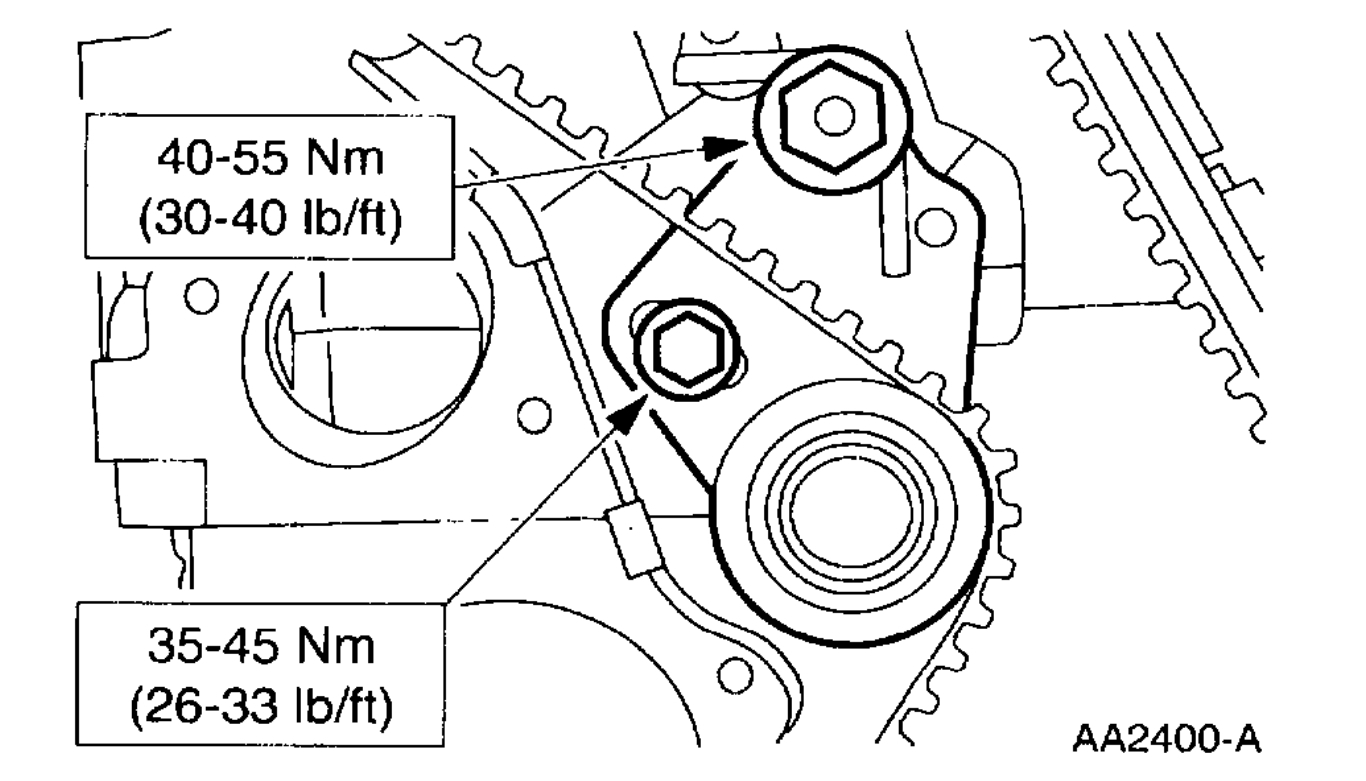 5. Note: The timing belt tensioner must not be tightened or belt tension will not be distributed over the entire belt.
