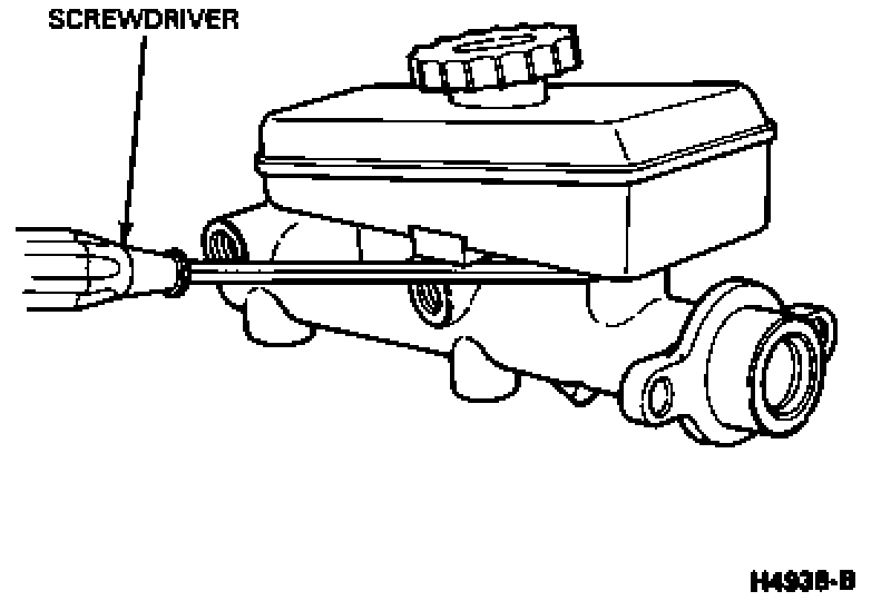 2. Using a large screwdriver, pry between the brake master cylinder reservoir and the brake master cylinder and remove the brake master cylinder reservoir.