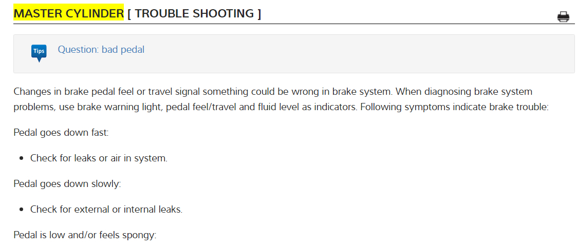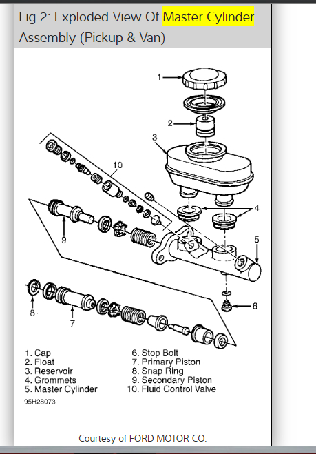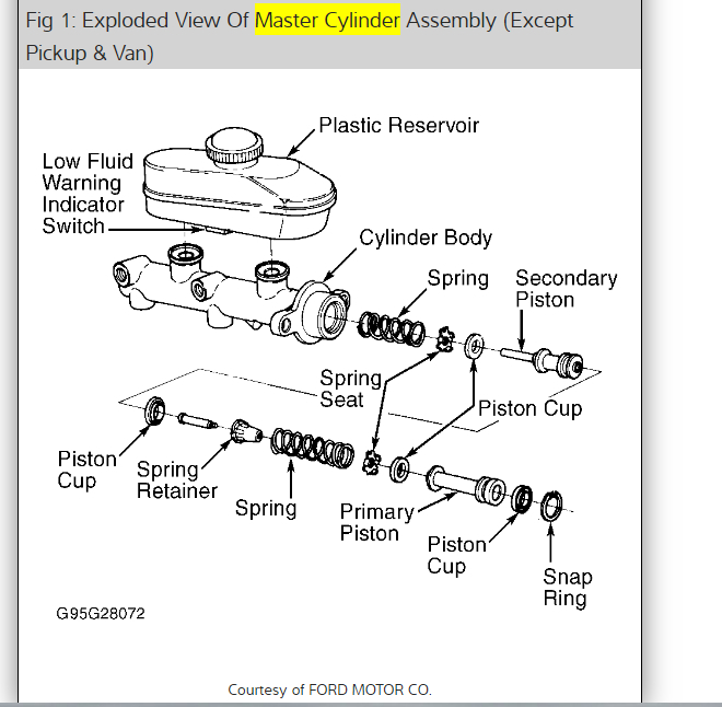 I have also included exploded diagrams of both brake master cylinders that are used on your vehicle as well as a factory troubleshooting guide for the master cylinder in the diagrams down below for you. Please go through these guides and get back to us with what you are able find out.