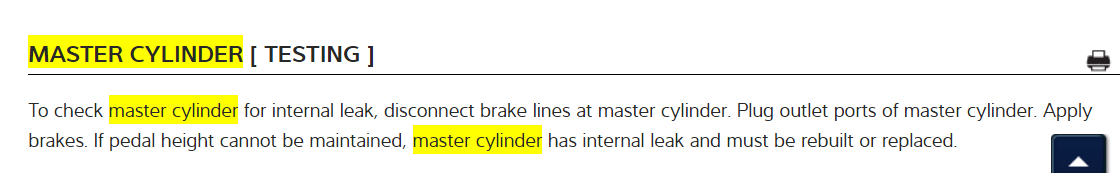 Thank you very much!!! Are there tests I can run (or a brake shop) that will tell me if it is the mastercylinder or not?