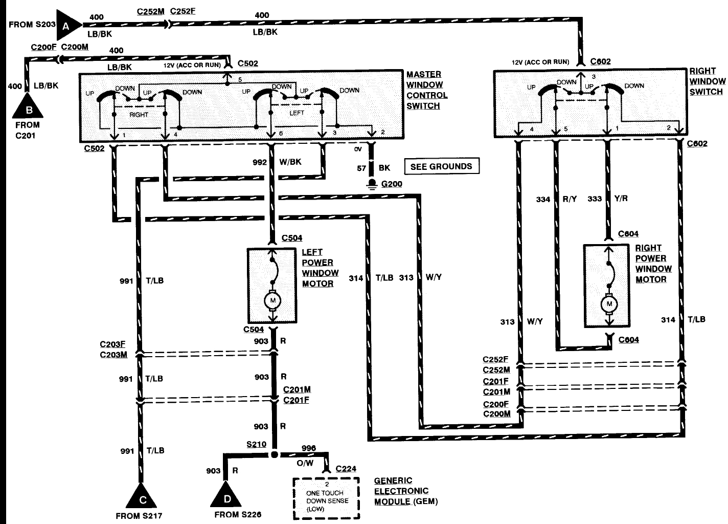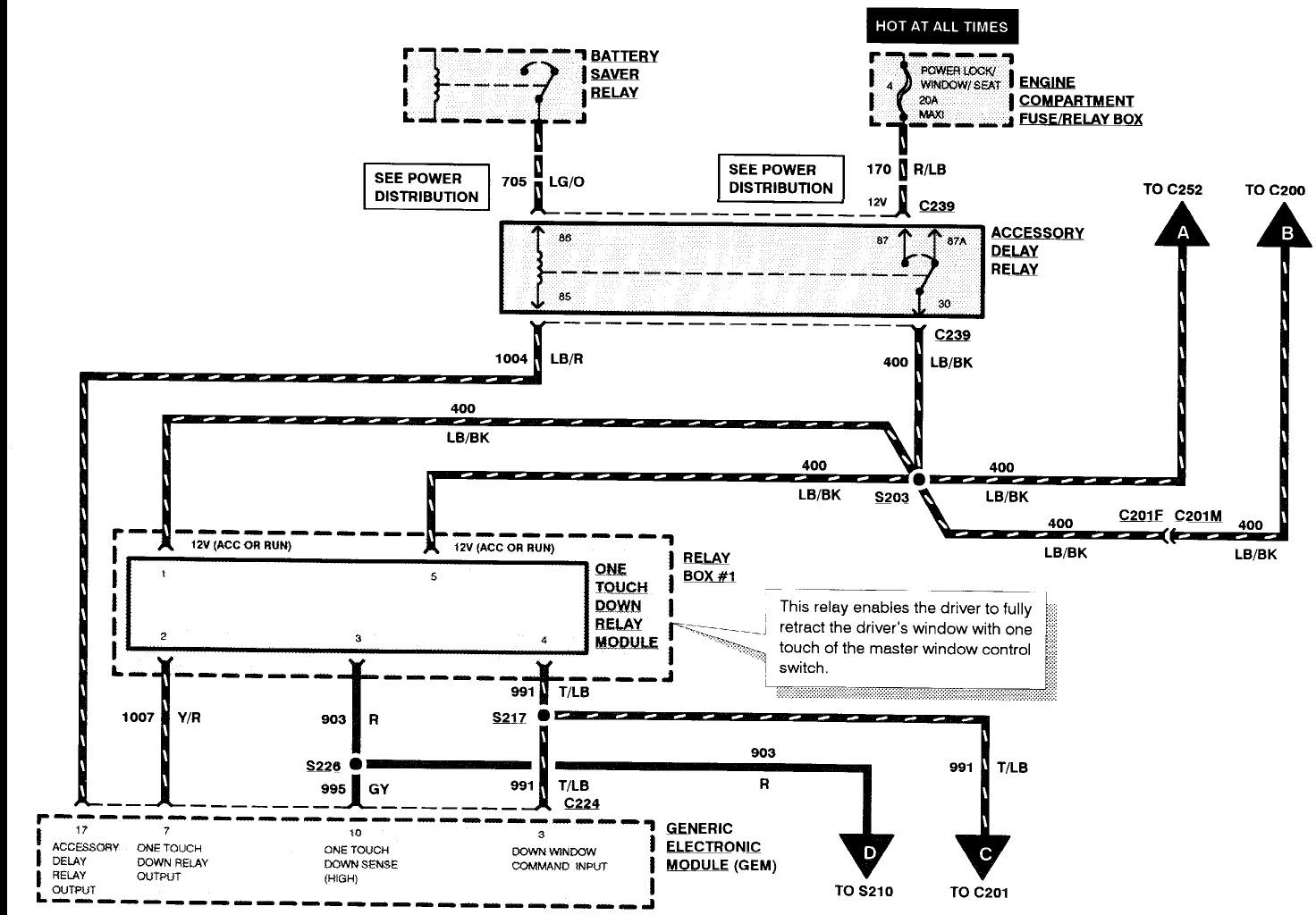Fuse 4 in the under-hood box is power windows and locks as well as power seats. The under dash box contains only the one touch relay for the windows. The accessory delay relay is the other window related relay. The rest is controlled through the GEM module.
