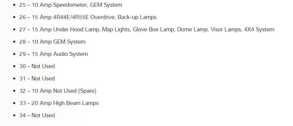 Here is the fuse panel (below) for your truck with a guide to help you check for power.