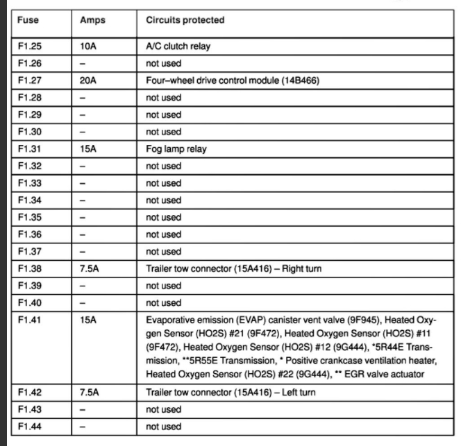 I attached the legend and pictures of both fuse boxes for you. Check out the diagrams (Below). Please let us know what happens. Let me know if you have any other questions.