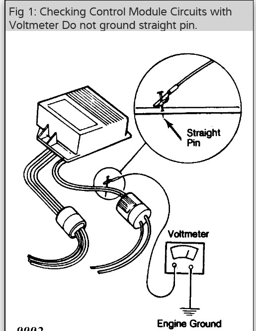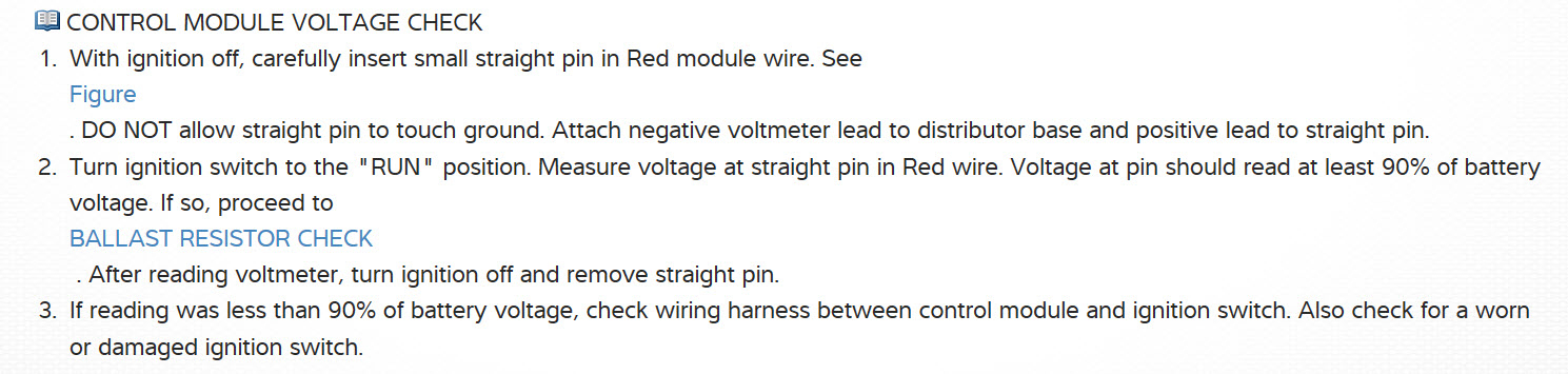 I am assuming that you have no spark. check items in picture both should have at least 90% of battery voltage. if none at module then it may be a bad ignition switch. see pictures module may be bad. also, never disconnect cylinders number one or eight while testing or running.
