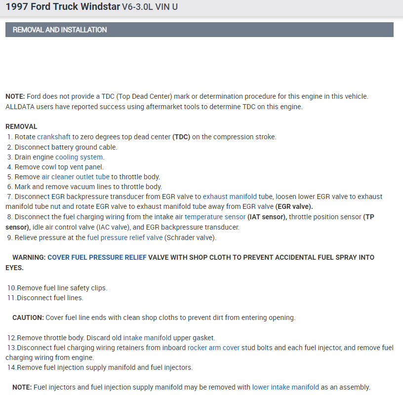Also the fuel line need to be depressurized and disconnected.