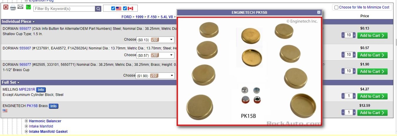 Having a lot of trouble finding the right size freeze plugs for the rear two of my truck listed above 5.4 Triton can anyone here help me out?