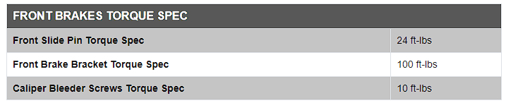 The question: What are torque specs for the Front brake bracket bolts... and for the slide pins?