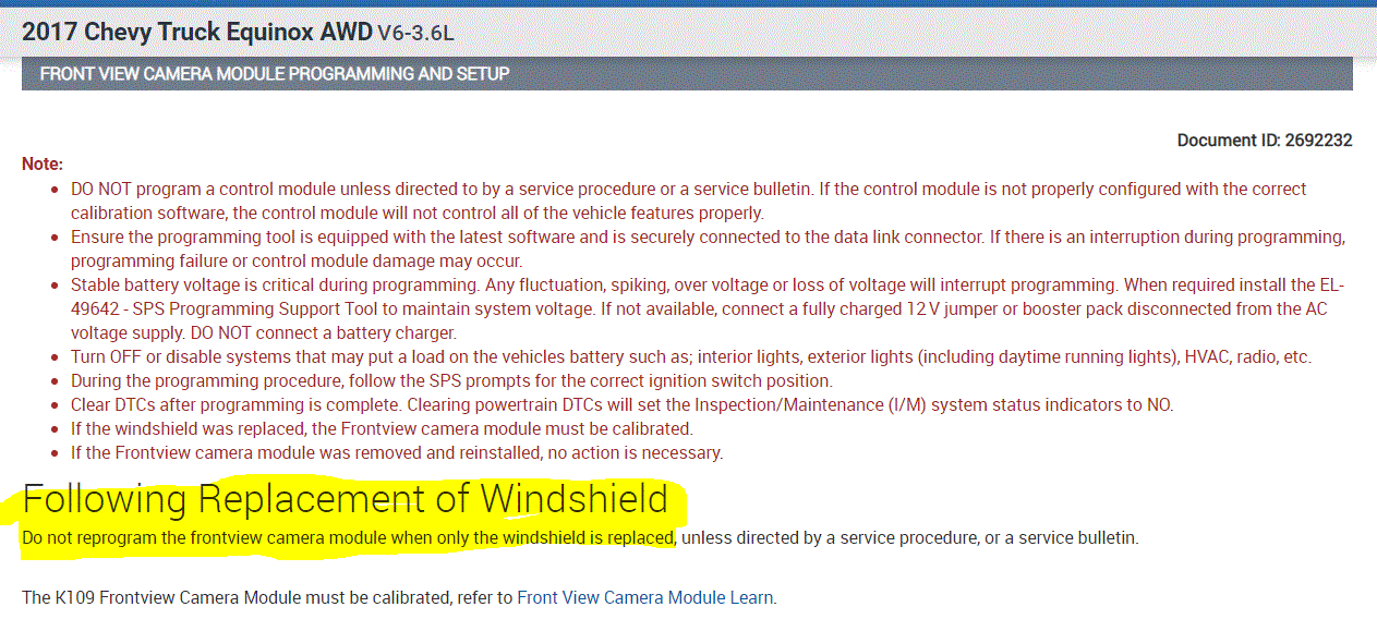 I need to replace my windshield due to a crack in my line of sight. Is it necessary to have to recalibrate my forward facing camera for just windshield replacement?