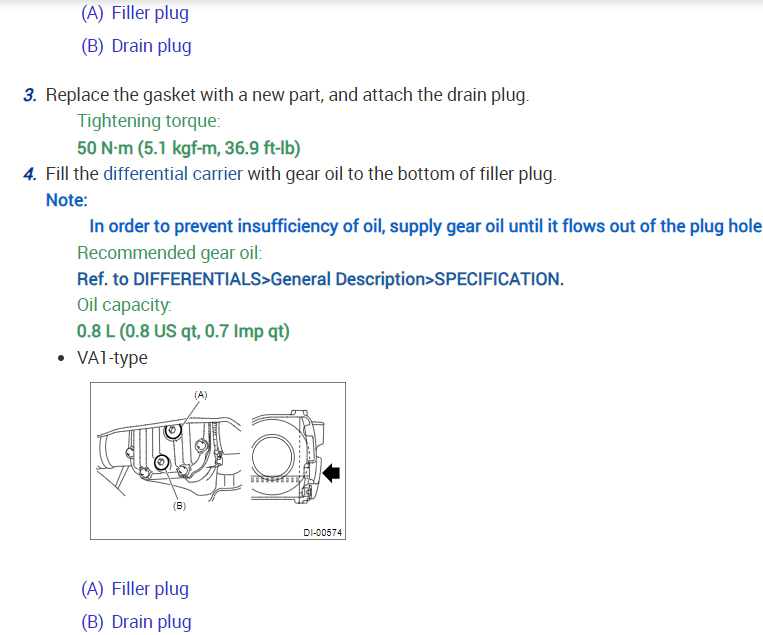 Yep, that sounds correct. Here are the instructions on how to service the front and rear differentials with the fluid type and capacities. Check out the images (below). Let us know if you need anything else.