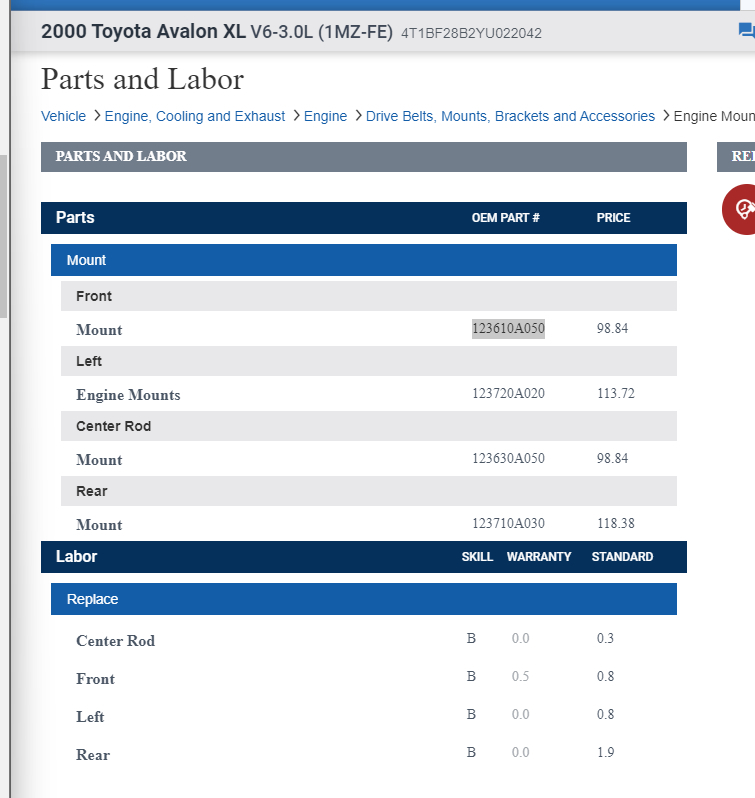 with and without Vacuum Fitting, that fit my 2000 Toyota Avalon.