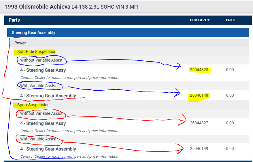 I do not live in the United States. I don't know technical terminology in English very well, but I use a dictionary. I have a very old car (VIN 1G3NL5438PM025097). I am planning to buy and replace a steering rack. I have found a suitable steering rack. But it says that it is for a car with PERFORMANCE front suspension. And my car is equipped with "soft ride suspension (option FE1)". Please tell me if it is the same thing?