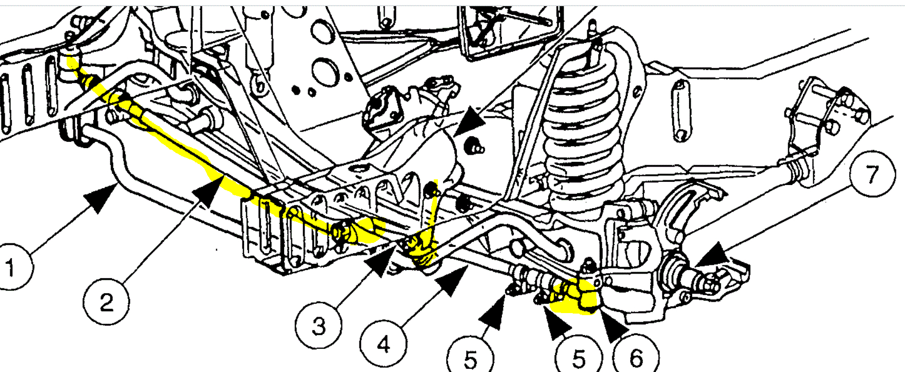 If you look at the pic below, I highlighted the pitman arm (attached directly to the steering gear), the drag link, and the tie rods. Safely lift one front wheel at a time and see if there is excessive play in the wheel.