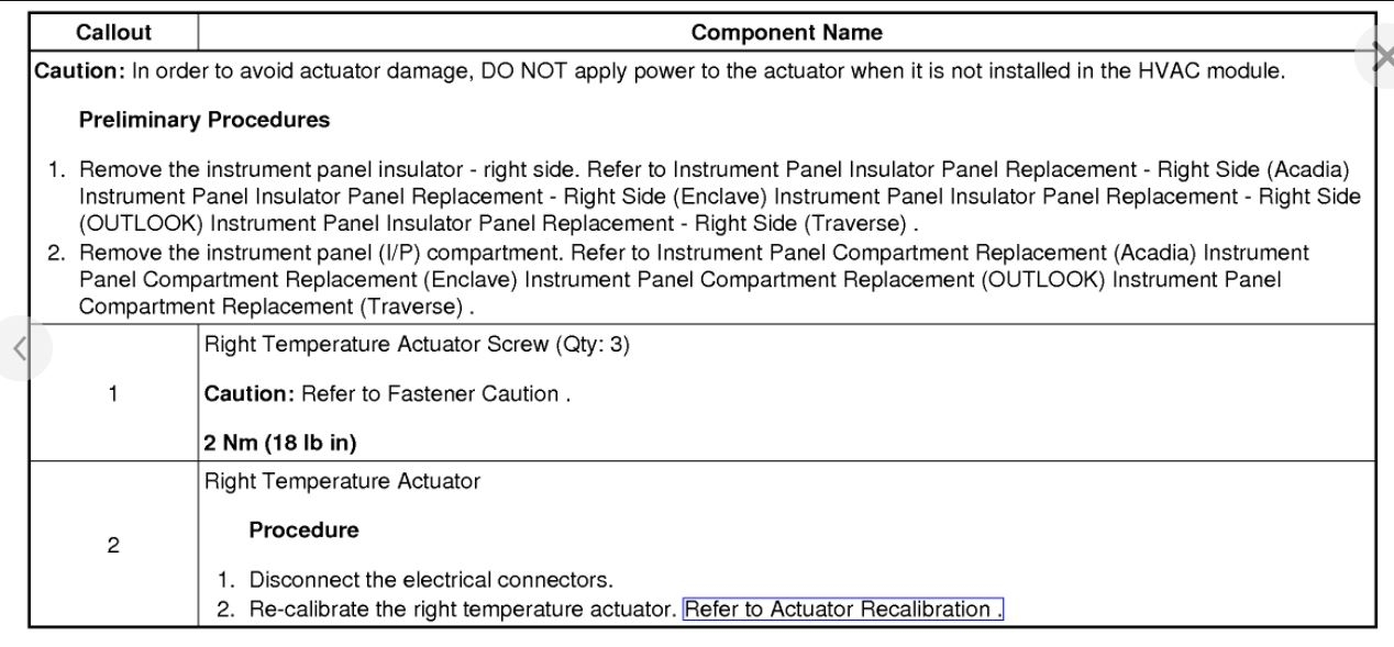 When replacing the HVAC actuator it will be necessary to allow the HVAC control module to perform a calibration process. When installing the HVAC actuator be sure to perform one of the following: