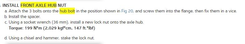 I have a base model, my front hubs are pressed in. On the back side is a big nut, what is the procedure for this style? Once it is all pressed in, do I hammer this nut with an air gun? Or is there a torque procedure?