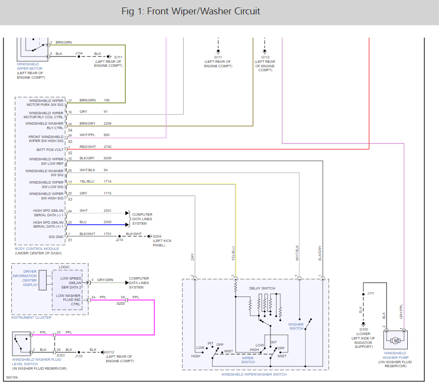 No power to front washer pump. The fuse is good. pump bench tested and is good. where else should I look? fuse is good bench tested and pump works no power to pump.