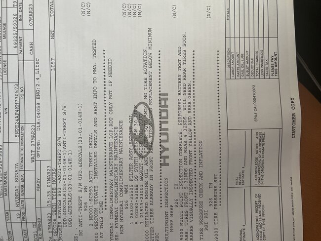 Please let me know if any other work was performed, like air filter replacement.