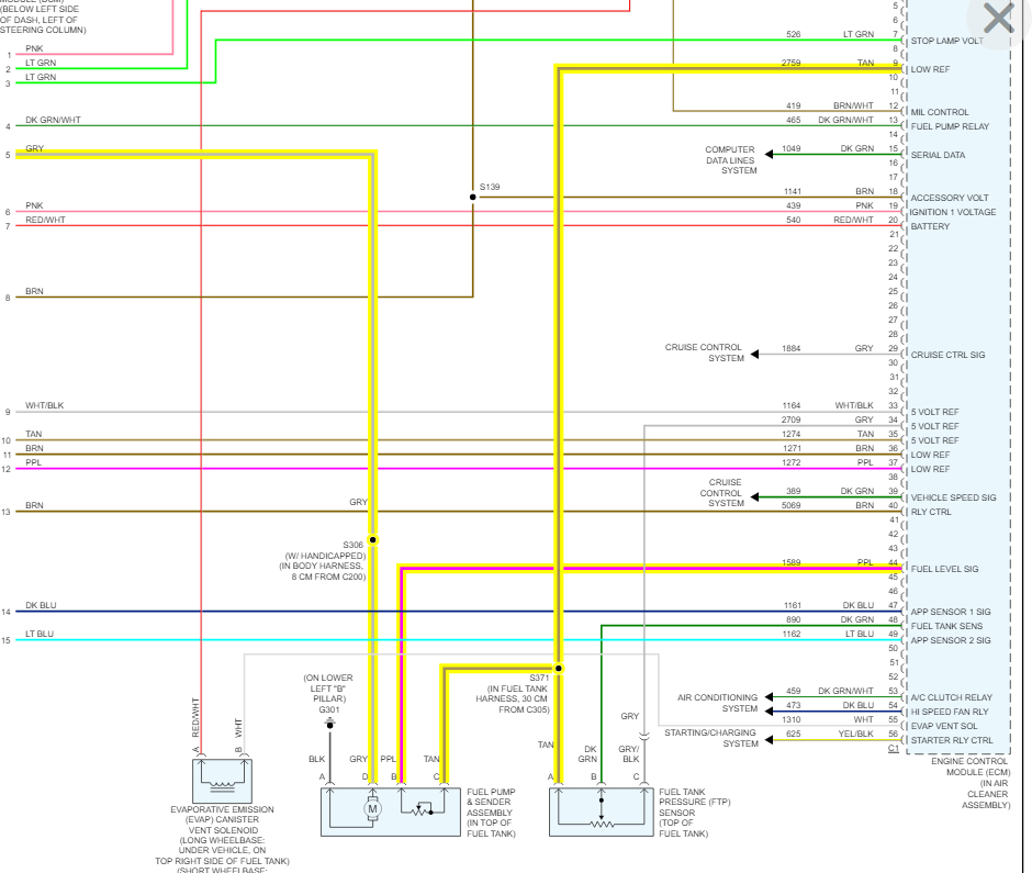 Not sure if I'm checking correct pins, due to a diagram for a different year.