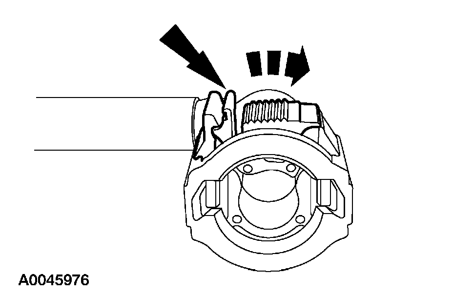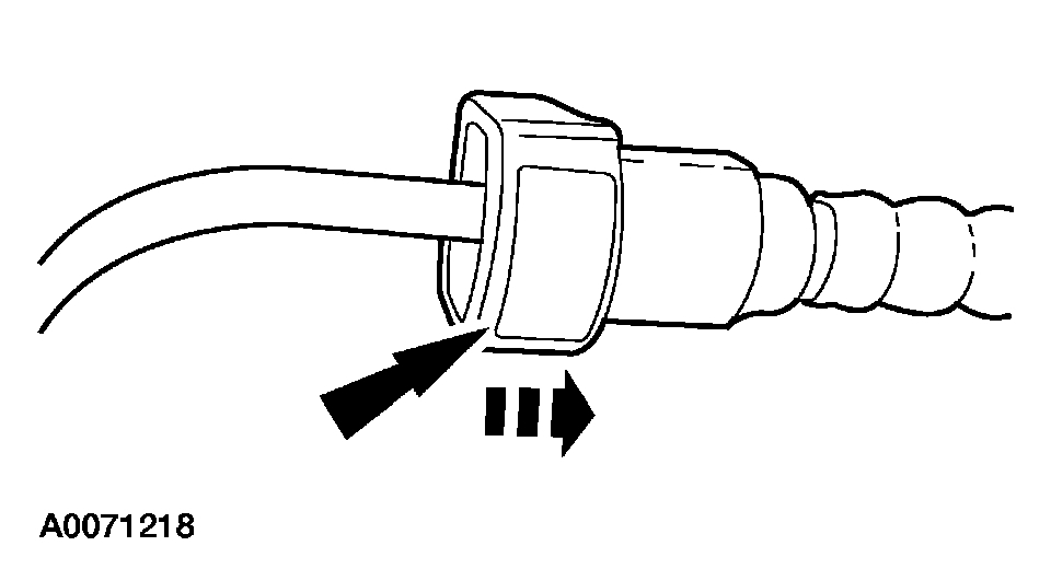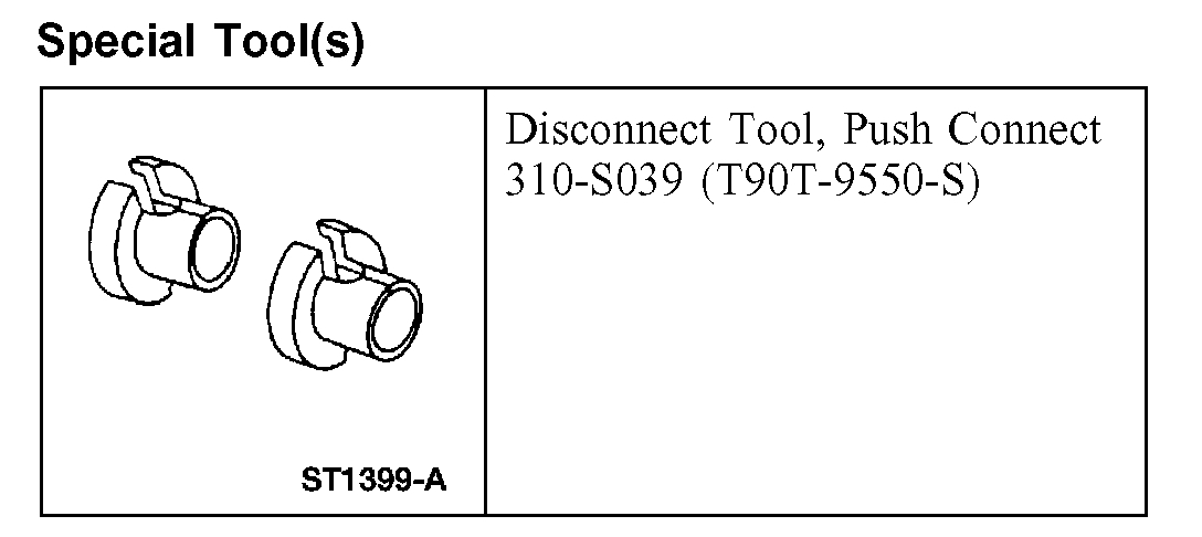 NOTE: If the fuel tube retainer clip is broken or damaged, install a new clip using a suitable fuel line disconnect tool to separate the retaining clip legs. Once the retainer legs have been separated, lift the clip out of the connector housing, lifting from the stamped side of the connector body.