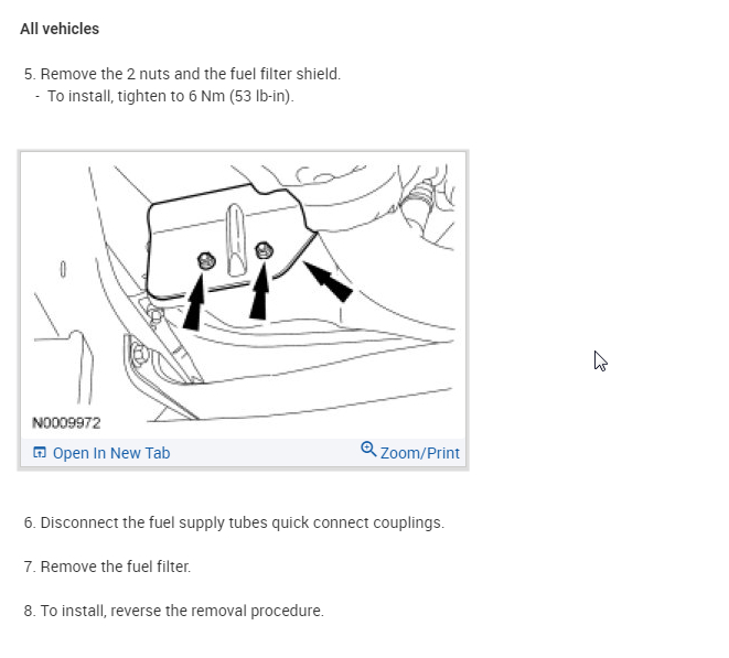 Here are the directions for fuel line/fuel filter replacement. The additional attached pictures correlate with the directions.