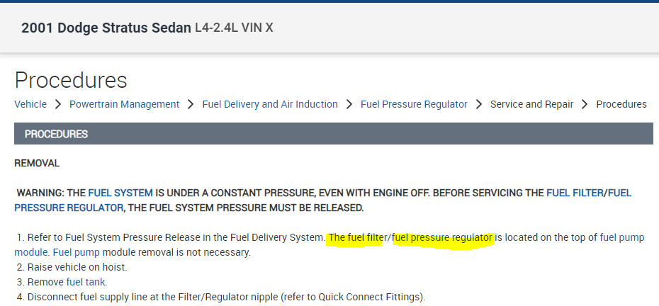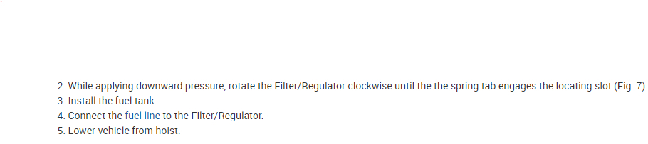 The fuel filter is located on the top of the fuel tank and attached to the fuel pump module. The filter and fuel pressure regulator are a single unit. The filter is integral to the regulator.
