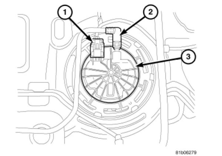 2. Disconnect electrical connector (1) from fuel pump module (3).