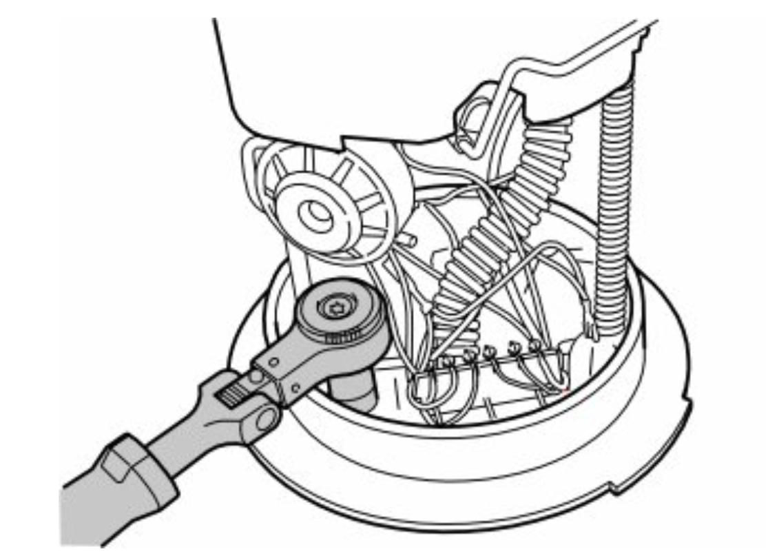 Remove the plug for the suction line from the underside of the level sensor, use a 9 mm socket.