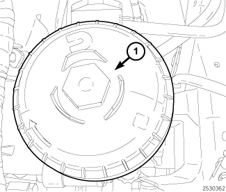 Install the secondary fuel filter element (1) and tighten finger tight. Tighten the fuel filter an additional ½ turn.