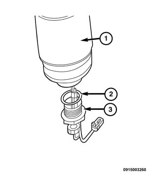 Using a new O-ring seal (2), install the fuel drain/water in fuel sensor assembly (3) and securely tighten.