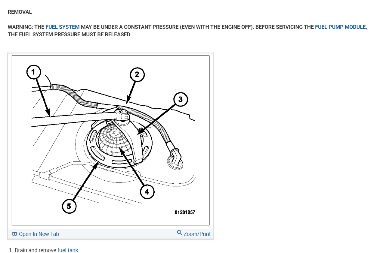 The fuel pump module assembly is located on the top of the fuel tank. The complete assembly contains the following components: