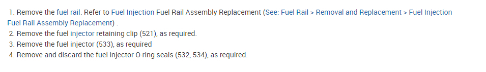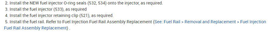 I attached the directions for replacing the injectors. When you do this, make sure to replace the o-rings and lubricate them before installing them. The manual says motor oil can be used. I usually use Vaseline.