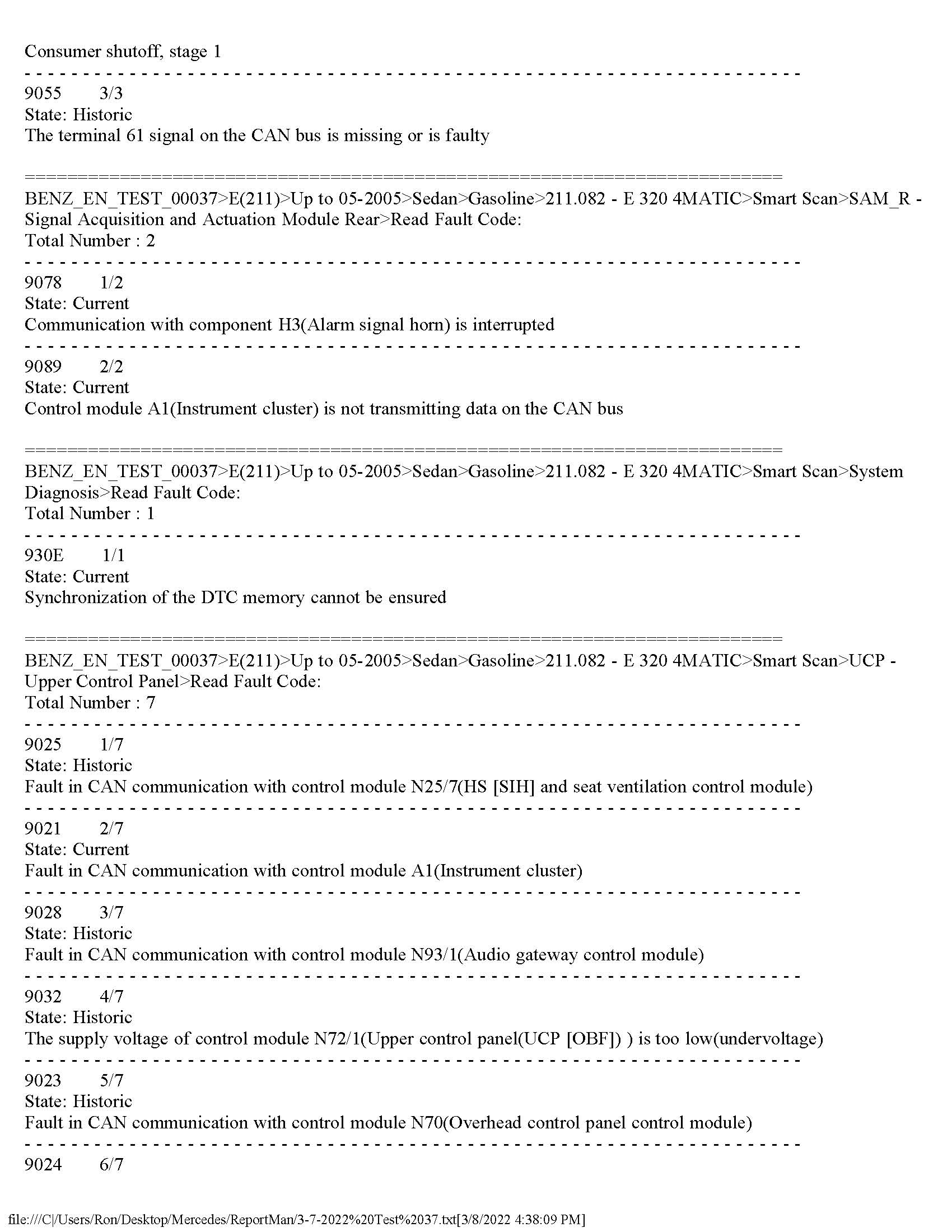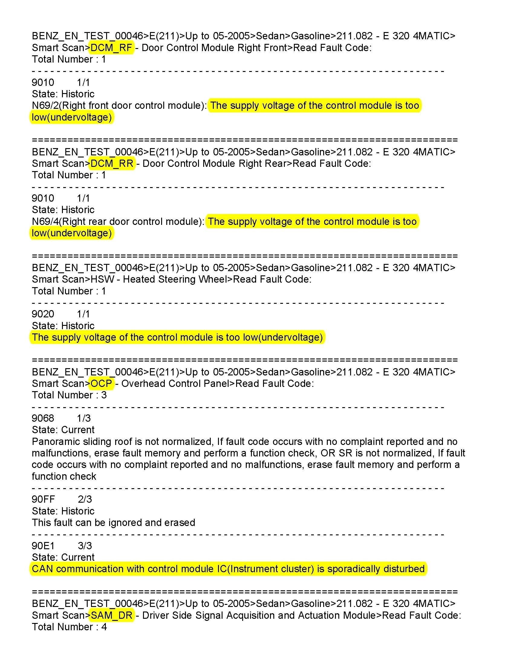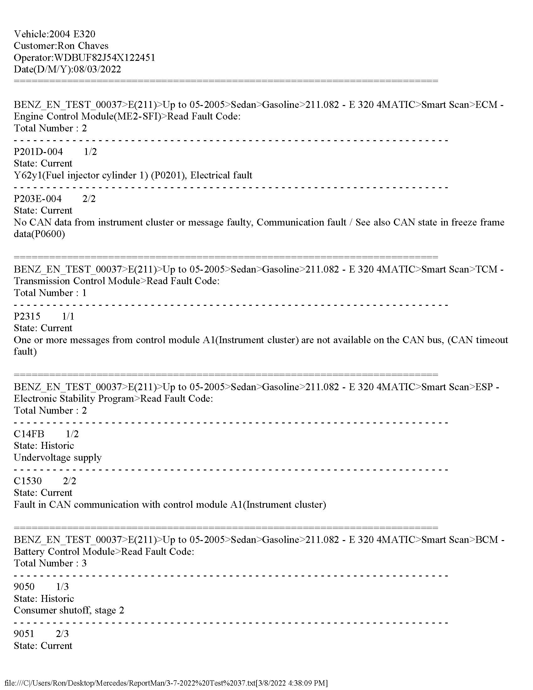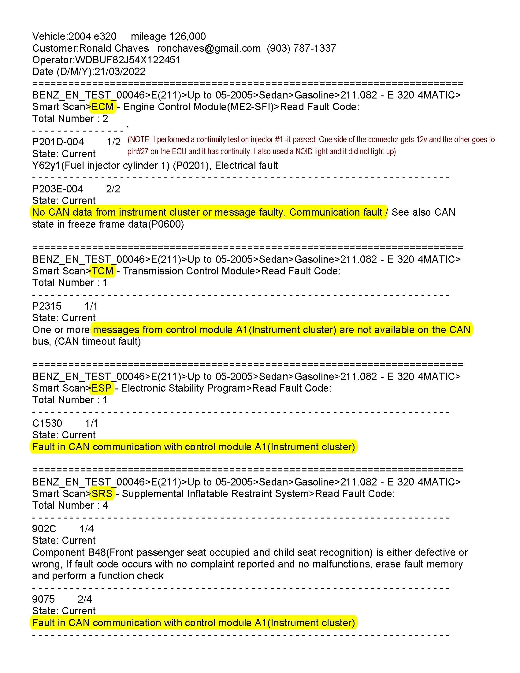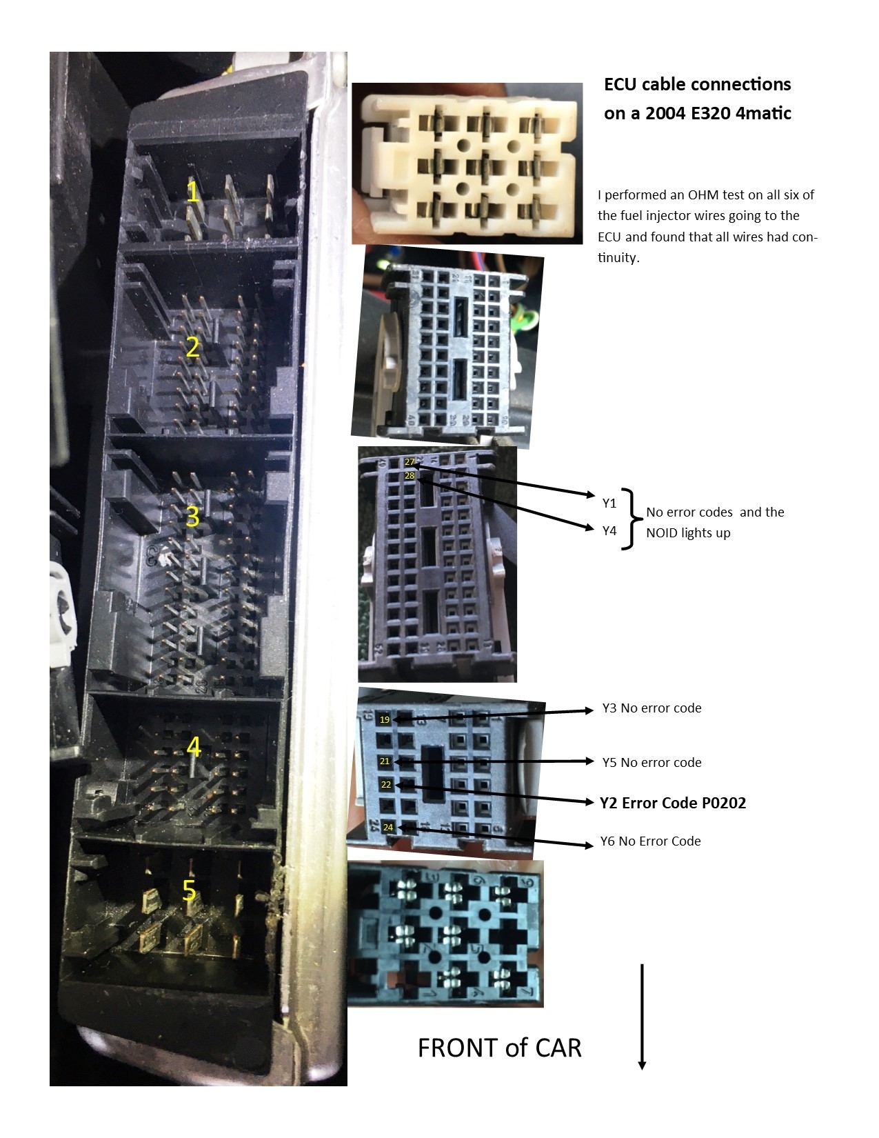 I have an ICarsoft II for Mercedes. The 0202 error code is gone but a 0201 remains. It passed the continuity test and the injector had 15. I connected a NOID light that did not light up. I inspected all of the fuses under the hood.